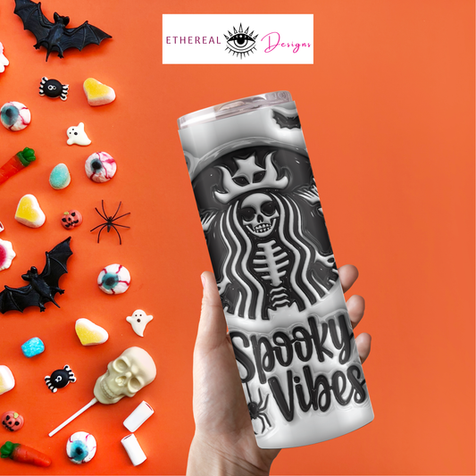 Spooky Vibes Black & White-3D Tumbler