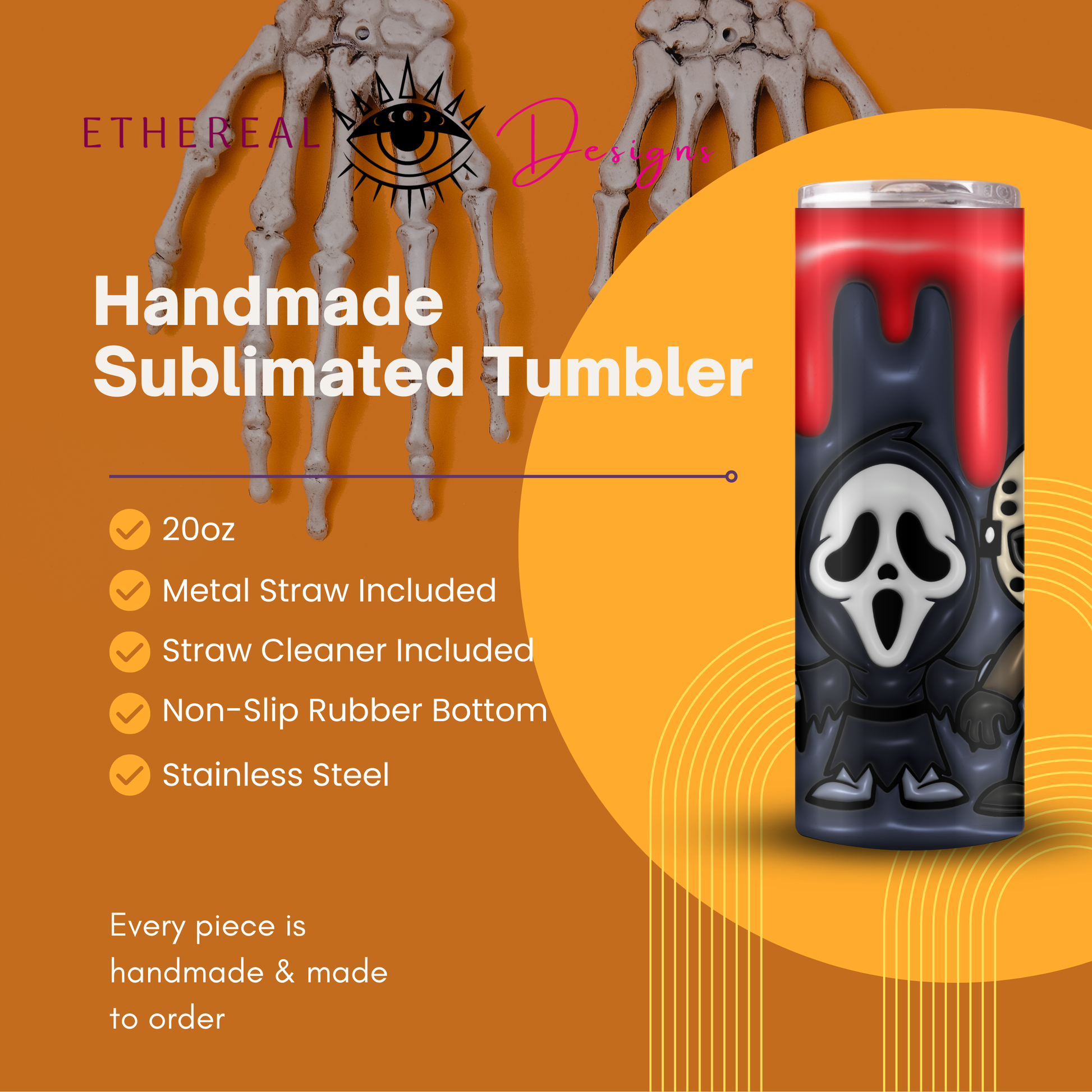 Meet the ultimate horror squad with our 3D 20 oz tumbler, featuring multiple iconic monsters and villains! It's not just a tumbler; it's your all-access pass to the world of screams and chills. Sip in style and let your favorite ghouls and villains elevate your sipping experience. Get ready for a frightful yet thrilling beverage adventure! π¦π»π₯€