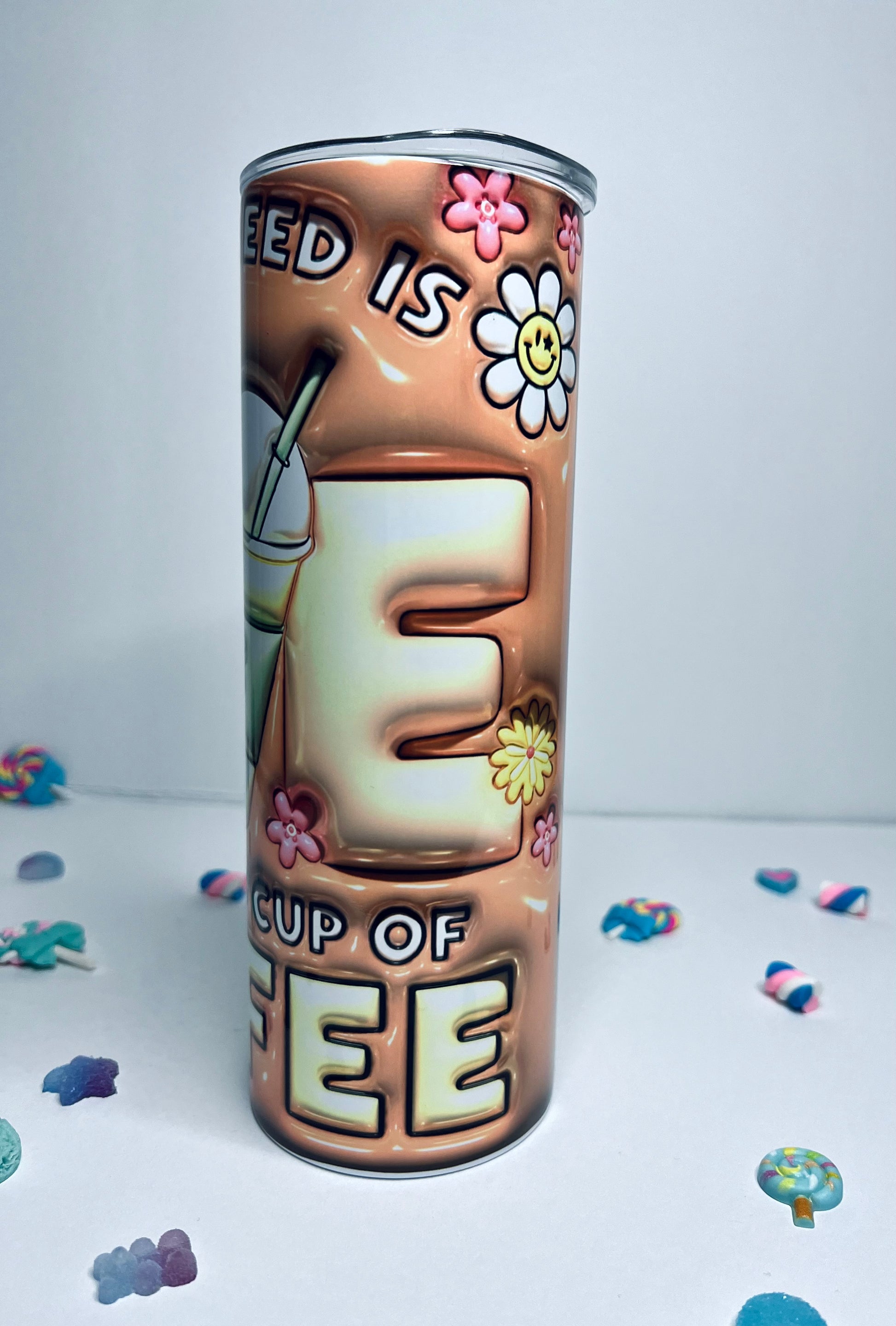 All you need is love and coffee, and our 3D 20oz tumbler has both! Sip and embrace the sweet simplicity of life with a side of caffeine. This tumbler is your cozy reminder that love and a good brew can make every day a little brighter. Grab one and let your heart and your cup overflow! β€οΈβπ₯€