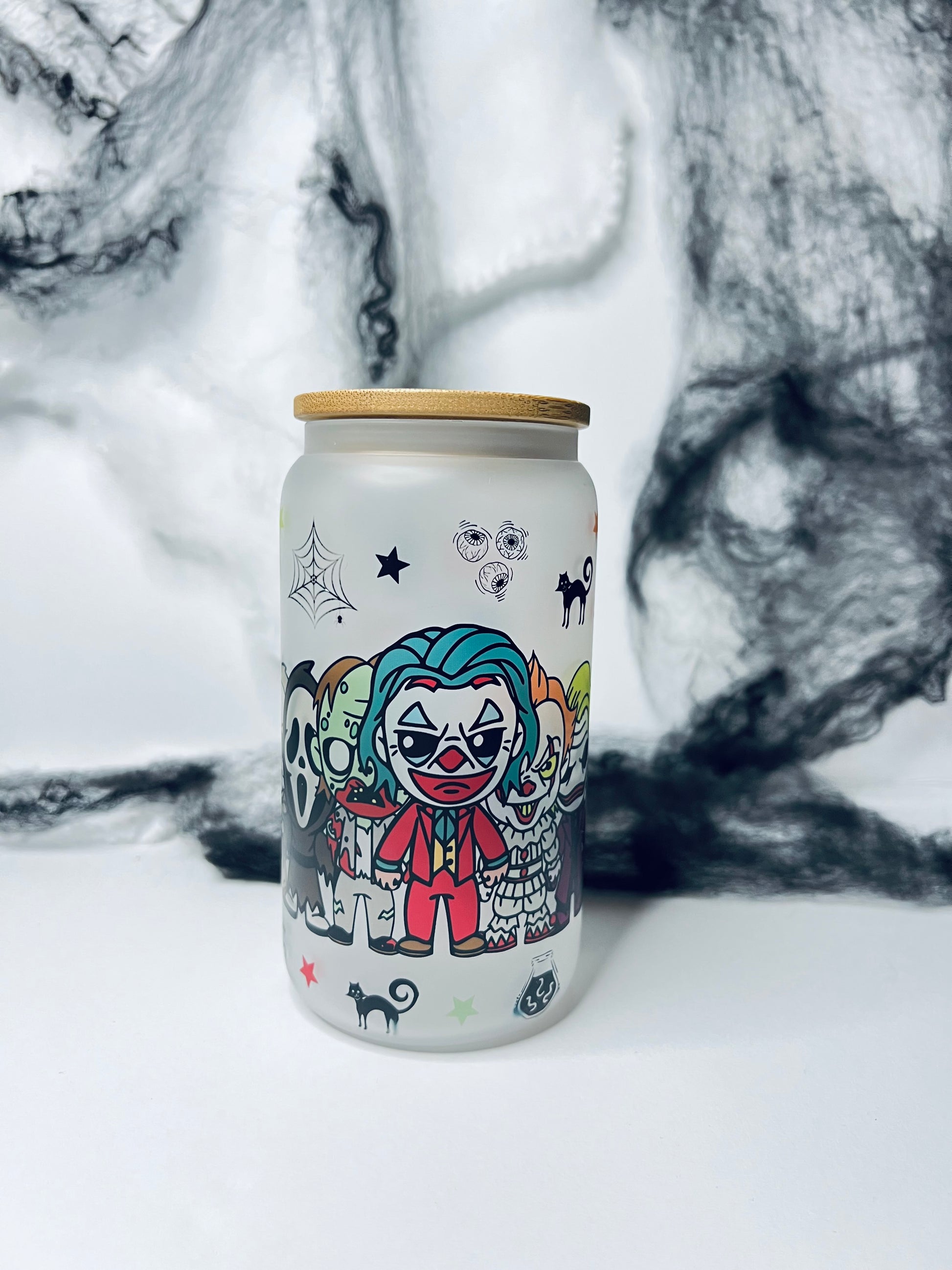 Sip in spooky style with our 16oz frosted libbey can! This cup features your favorite horror characters, a nonslip base for added stability, with a metal straw & bonus straw cleaner. It's the perfect way to enjoy your beverages while showing off your love for all things creepy. Grab yours today and keep the scares coming! 💀👻🕷️