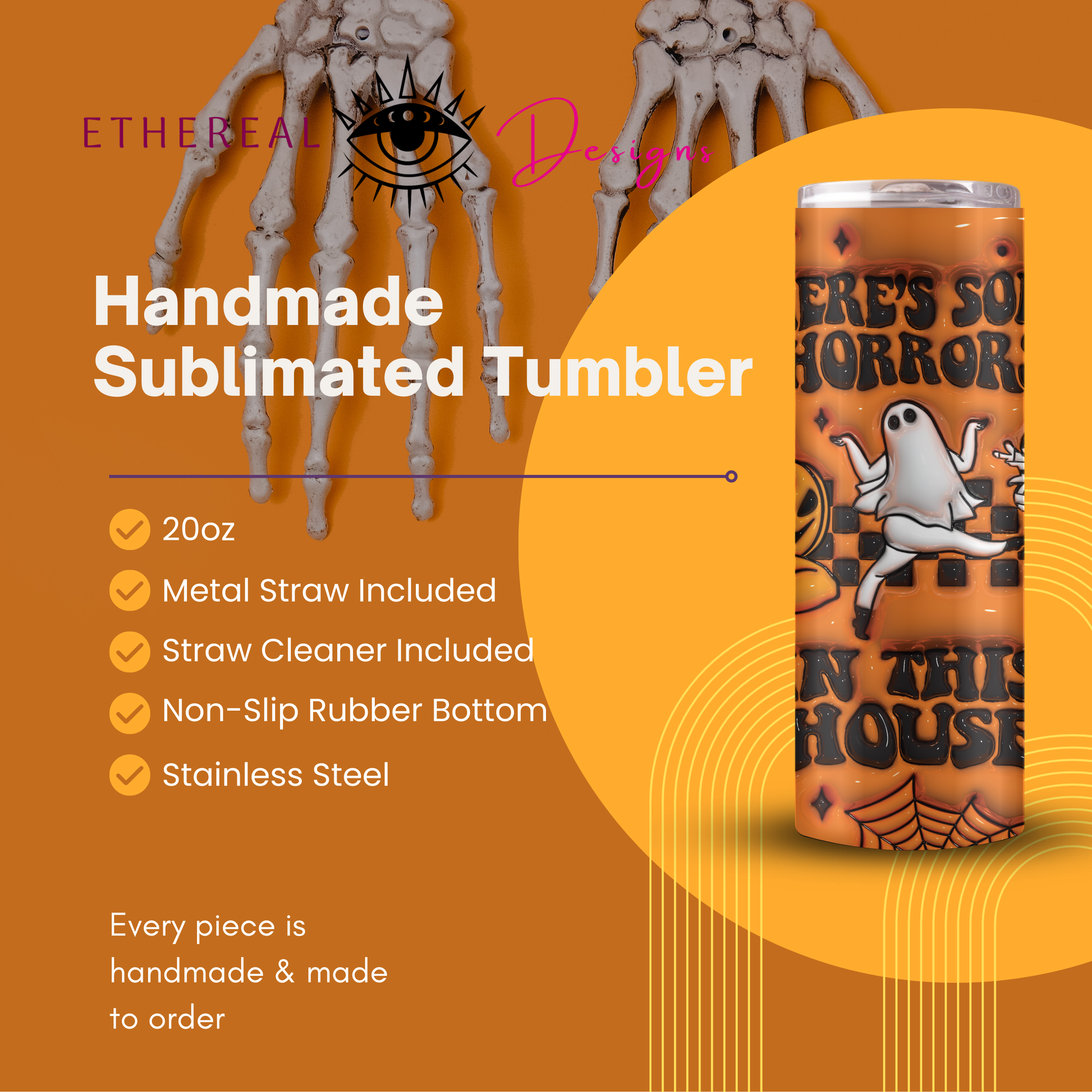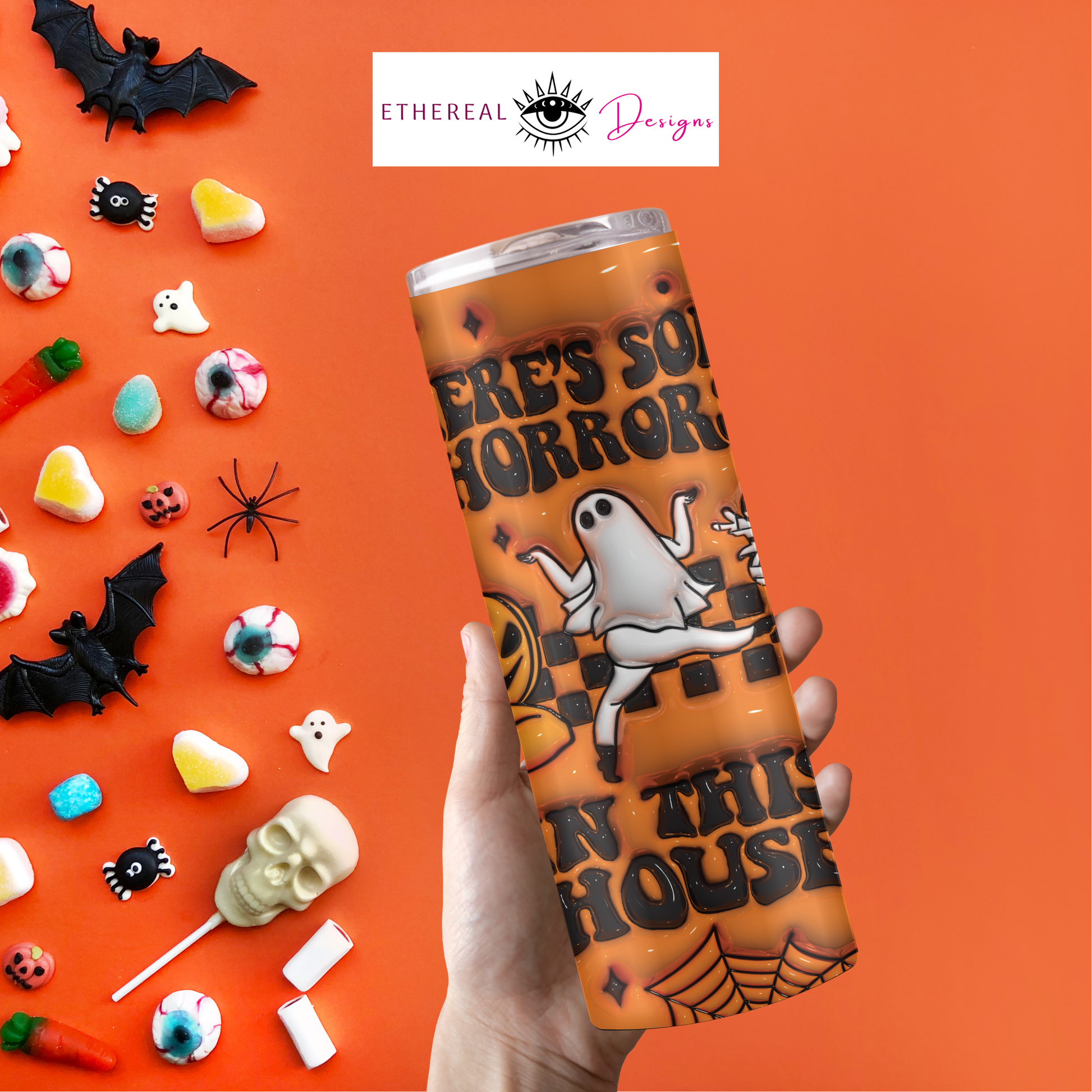 Get ready to stir up some mischief with our "Horrors in this House" 20 oz stainless steel tumbler! It's not just a tumbler; it's your ticket to a devilish good time. Whether you're sipping something wickedly cool or sinfully warm, this tumbler keeps the keeps the playful vibes flowing. So, raise a toast to the "Horrors in this House" and let your inner mischievous spirit shine - because every sip is a playful adventure worth sharing! ππΈπΊ