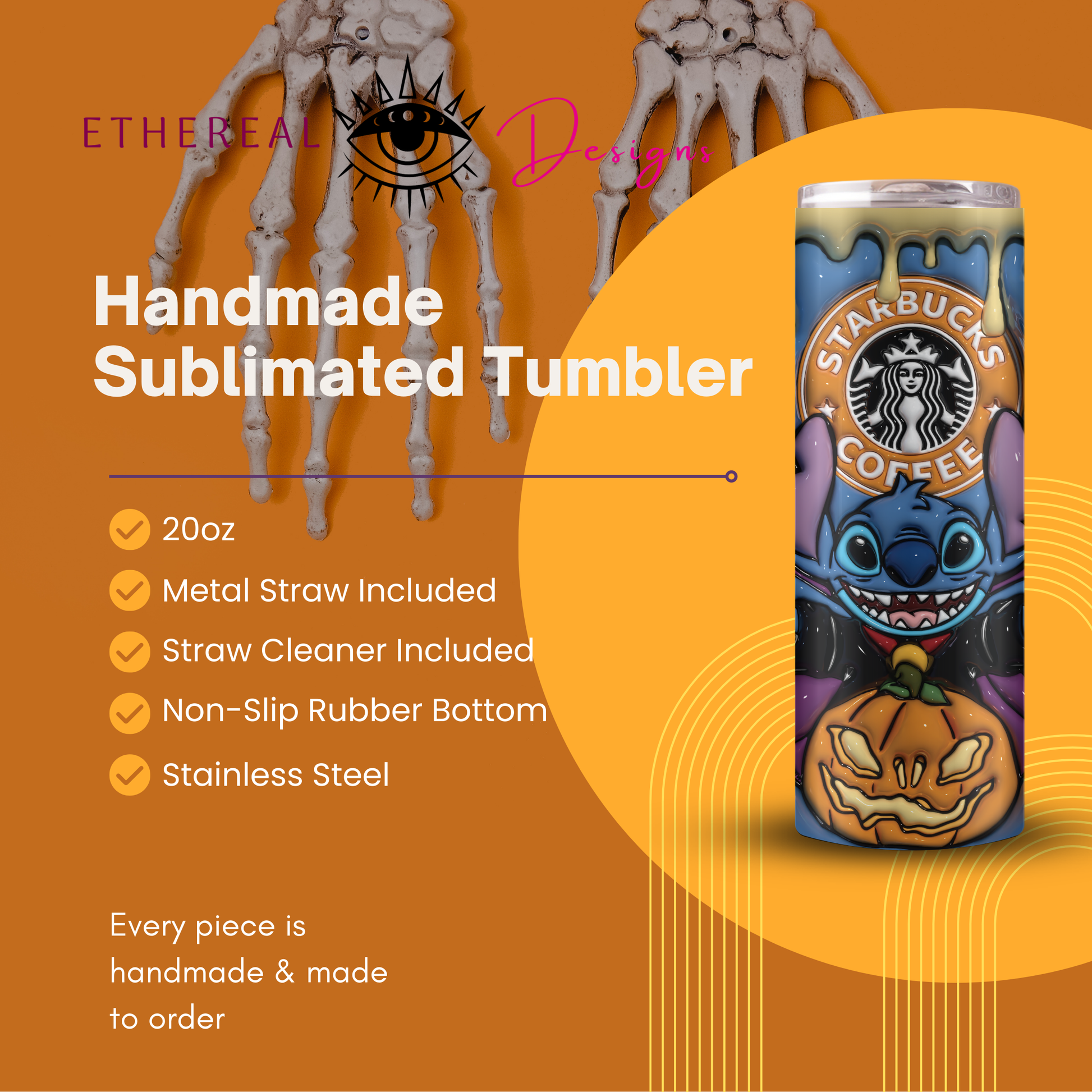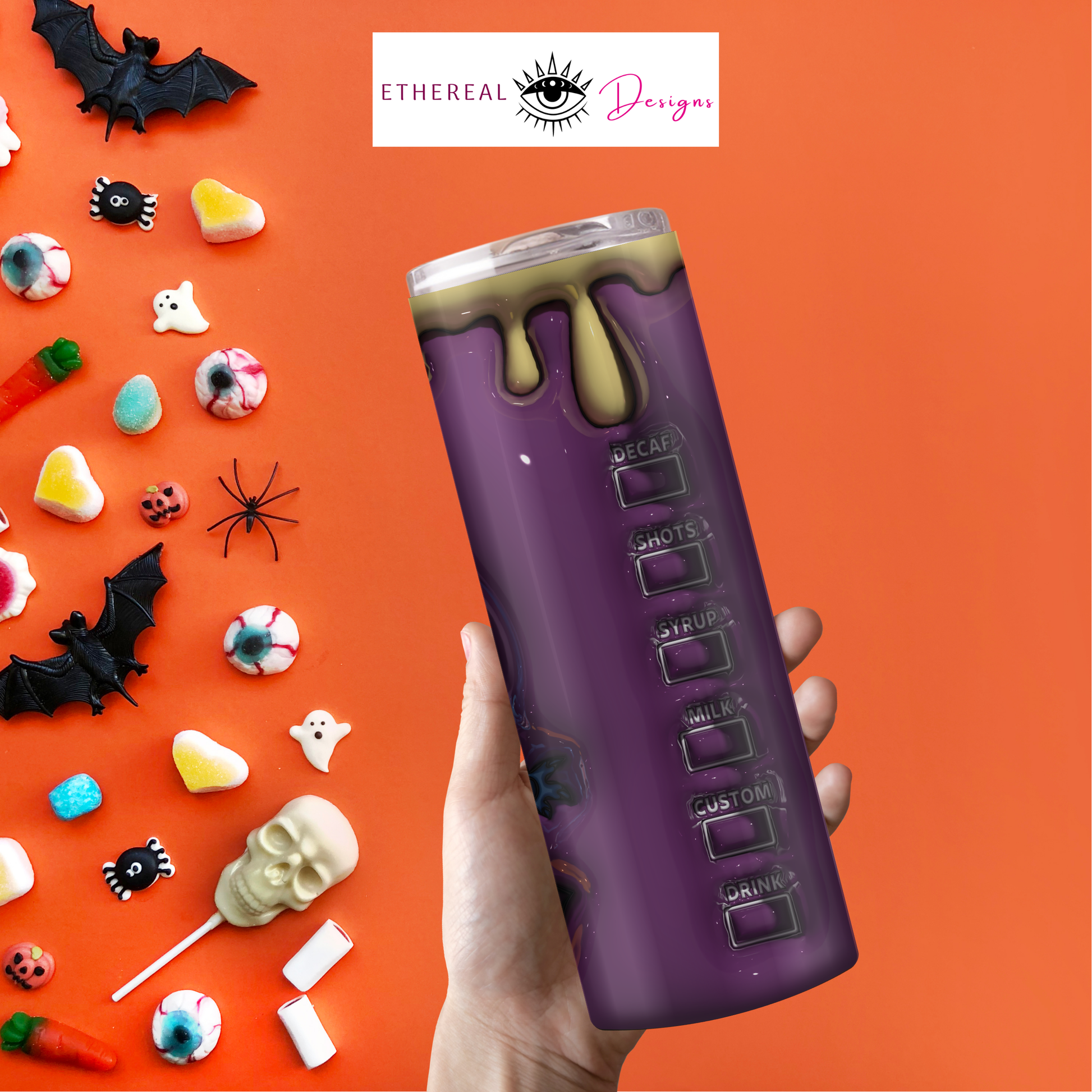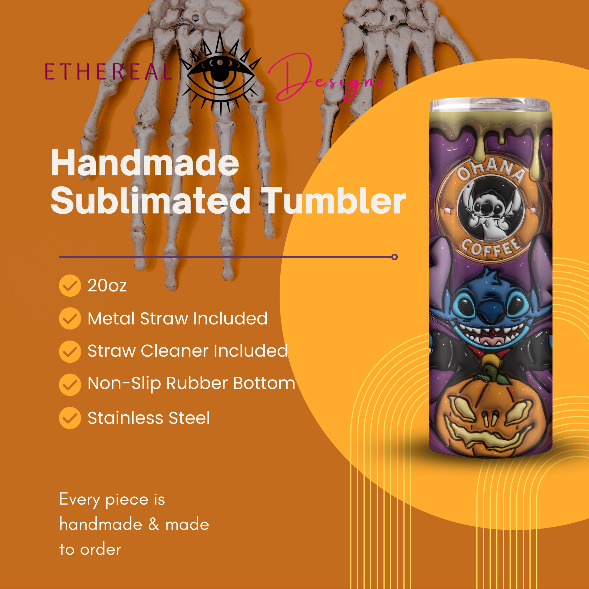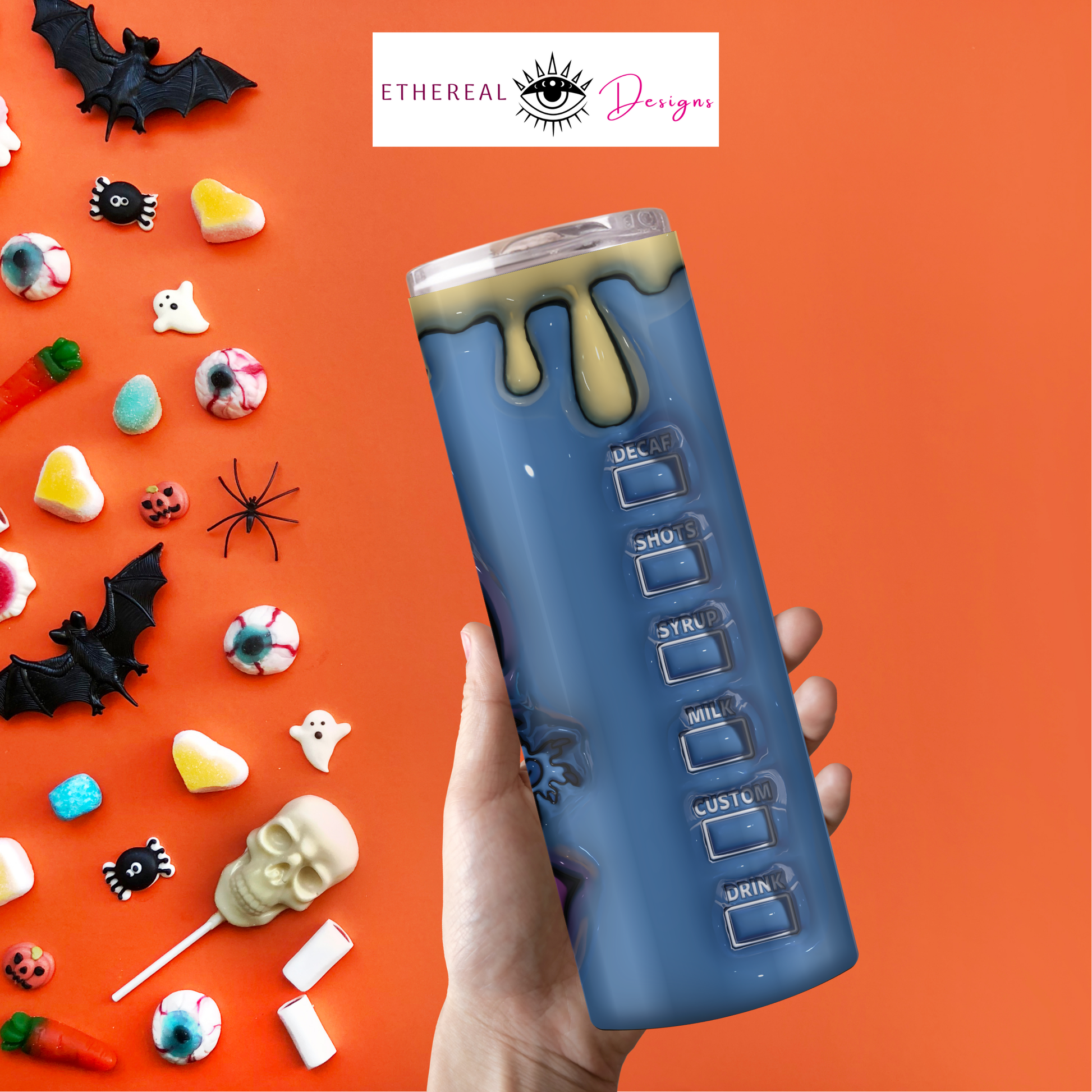 Prepare for a Halloween costume extravaganza on our 3D 20 oz tumblers, where a lovable, mischievous character dons a variety of spook-tacular disguises. It's not just a tumbler; it's a playful showcase of enchanting transformations. Sip in style and let your tumbler be your guide on a whimsical costume adventure. Get ready to enjoy a sip of delightful mystery! πππ₯€